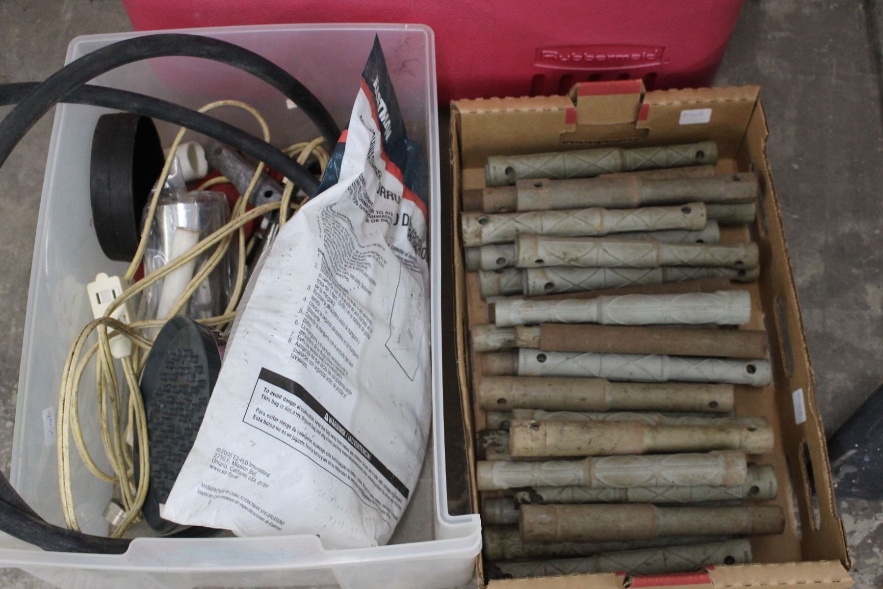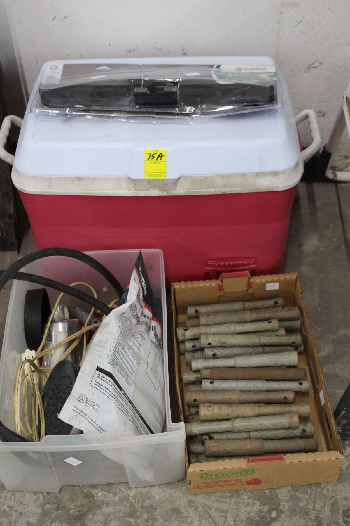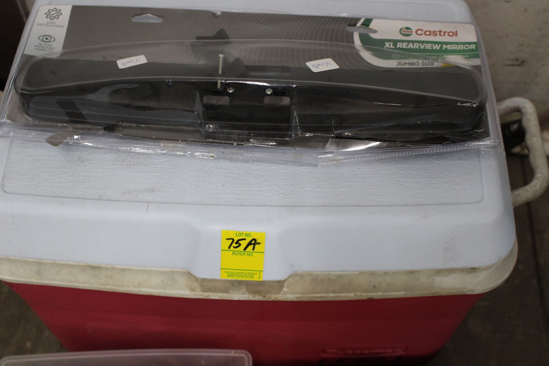 Rubbermaid Cooler, XL Rearview Mirror, Tub of Plumbing Wrenches, Shower Faucet