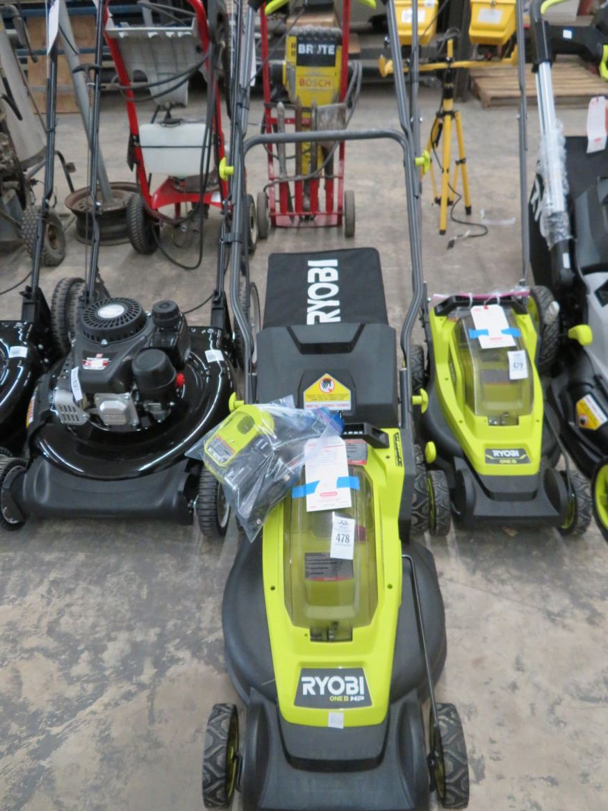Ryobi 16" Deck 18v Lawn Mower w/Battery & Charger + Bagger