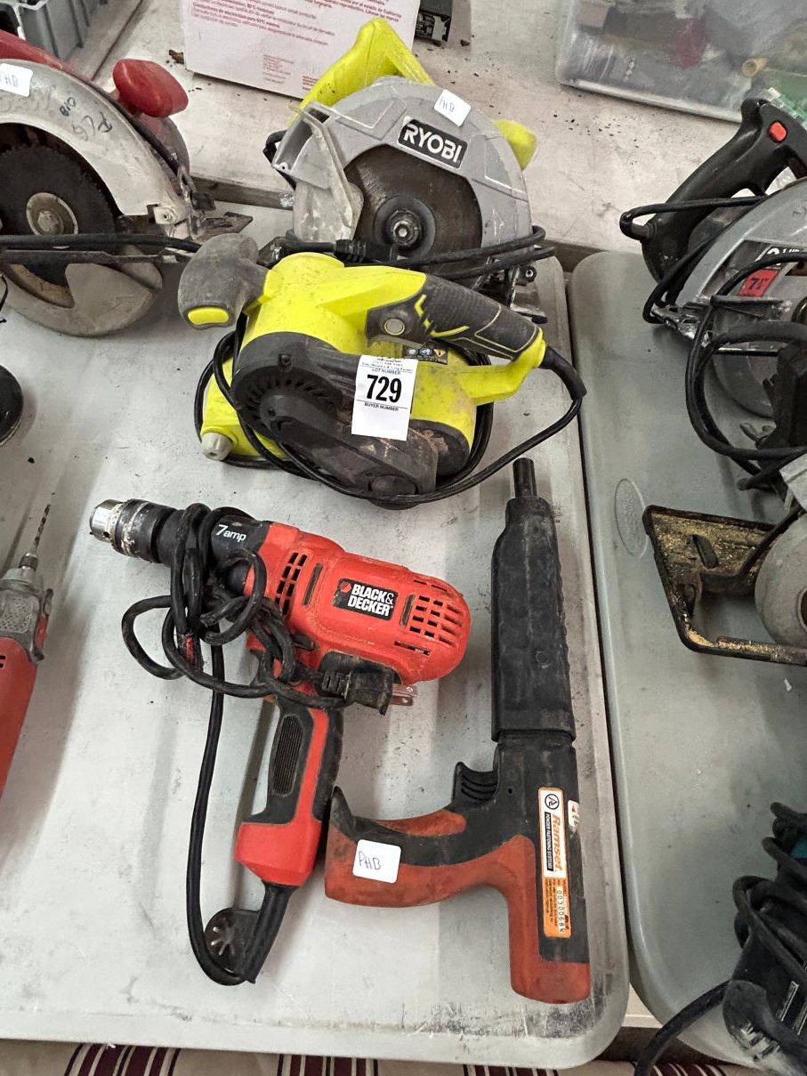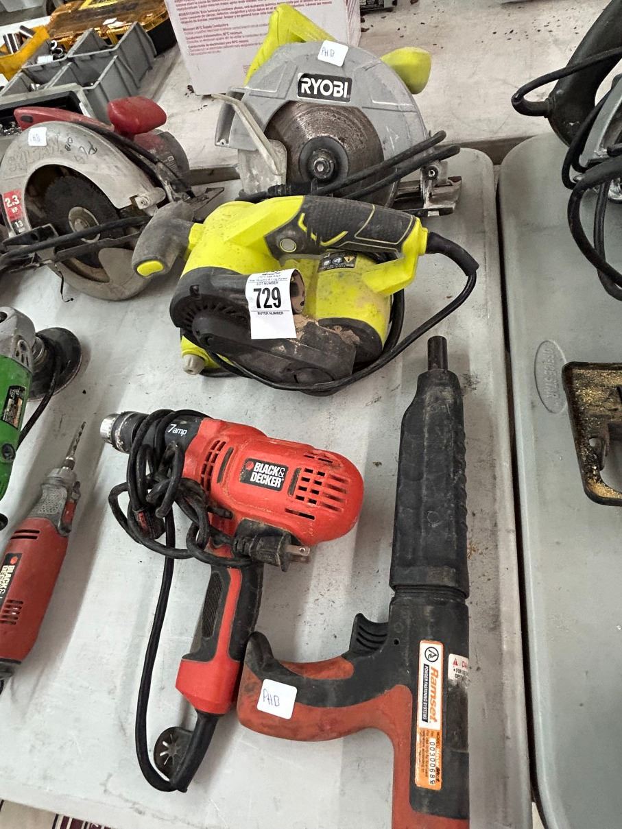 Ryobi Electric Circular Saw, Belt Sander, B & D Electric Drill, Stud Gun