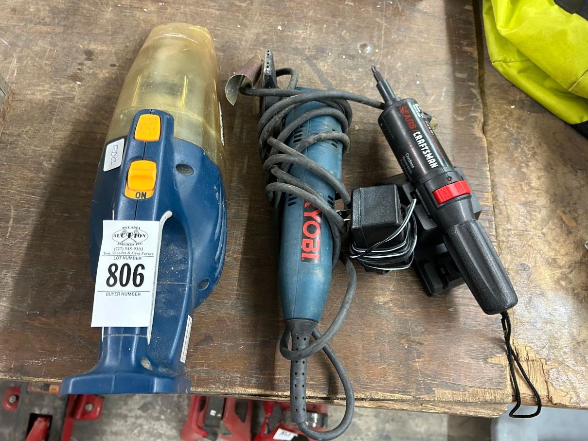 Ryobi Electric Detail Sander, Craftsman Cordless Screwdriver, Ryobi Vac - No Battery/Charger