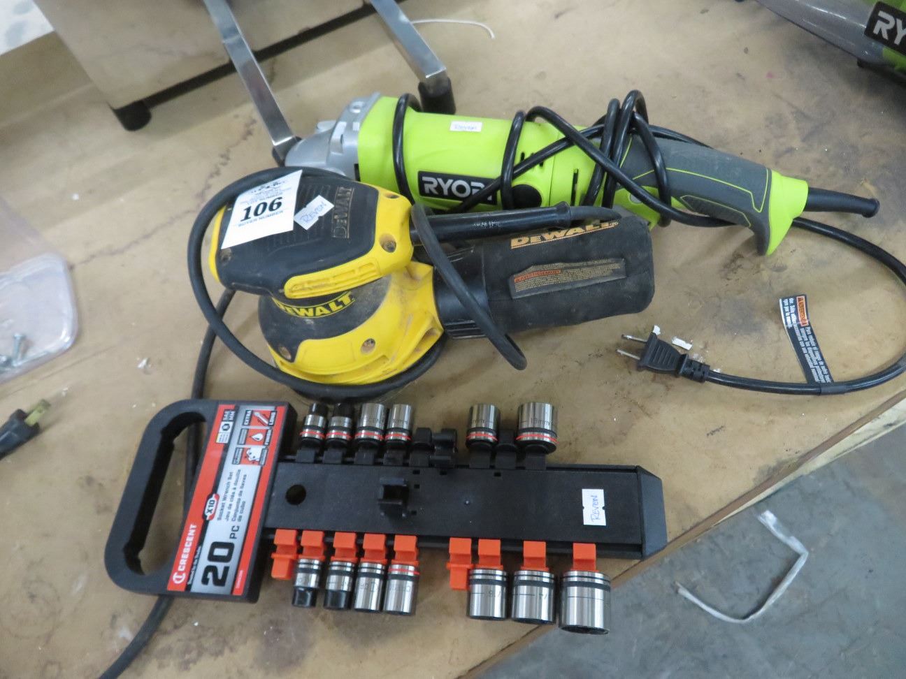 Ryobi Grinder, Dewalt Sander Socket Set (Incomplete)