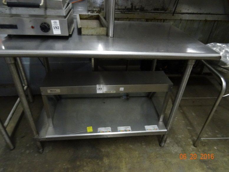 S/S 14' Workstation w/Cut Out & Double Overshelf