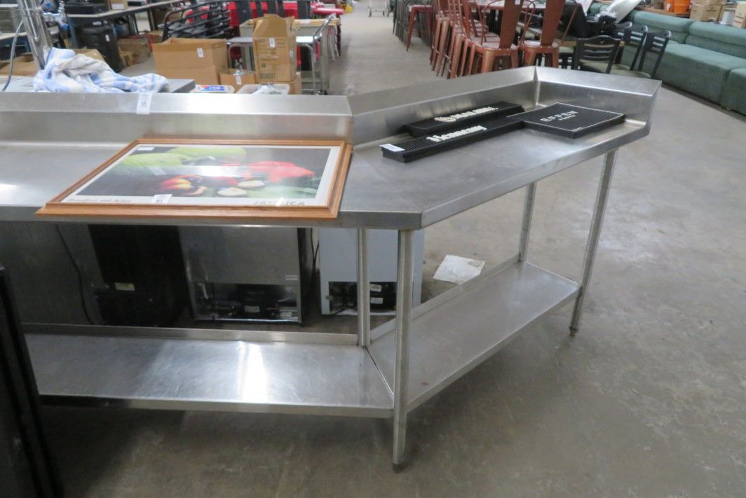 S/S 16' Corner Angle Table w/Backsplash & Order Shelf