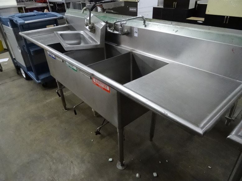 S/S 3 Comp. Sink with Drain Levers & Boards