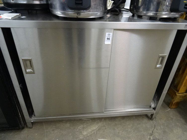 S/S 4' Table w/Backsplash & Cabinet Doors