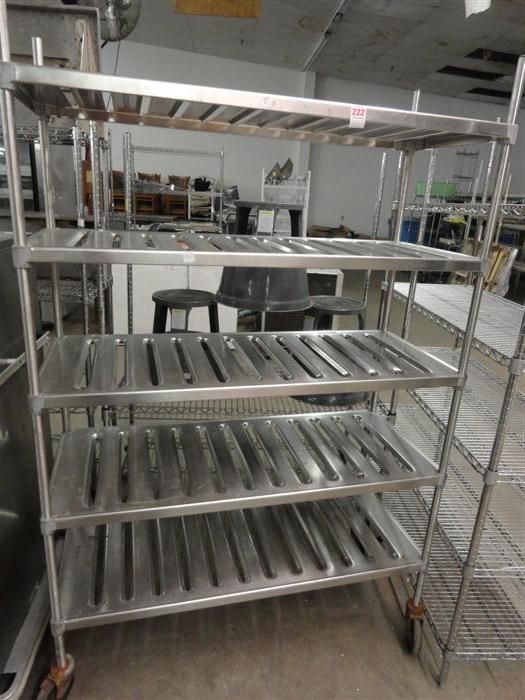 S/S 5 Shelf Rolling Rack - 1 Leg Bent