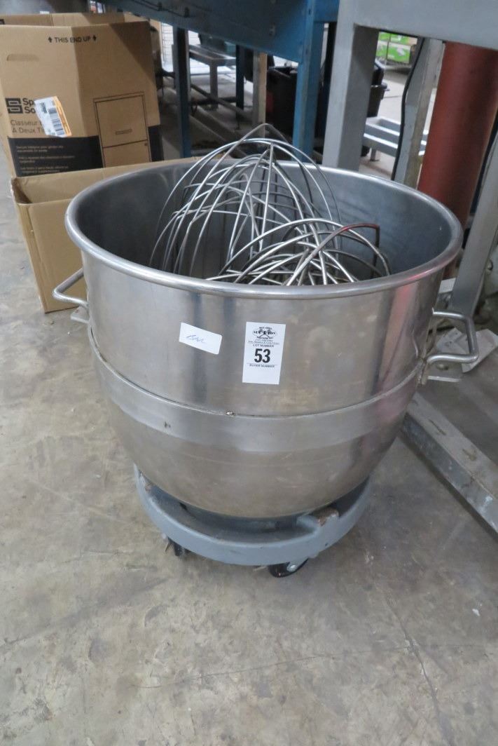 S/S 60 Qt. Mixing Bowl w/2 Whips & Dolly