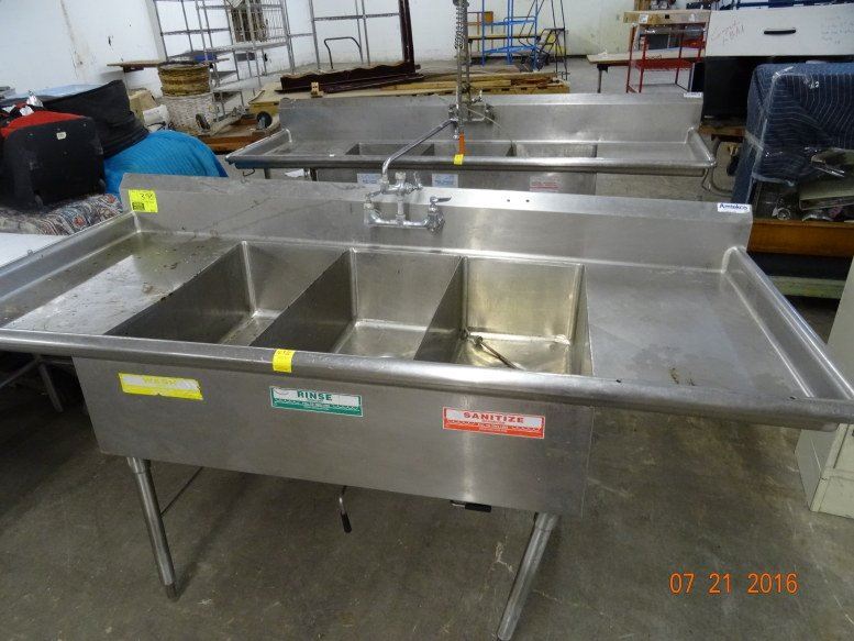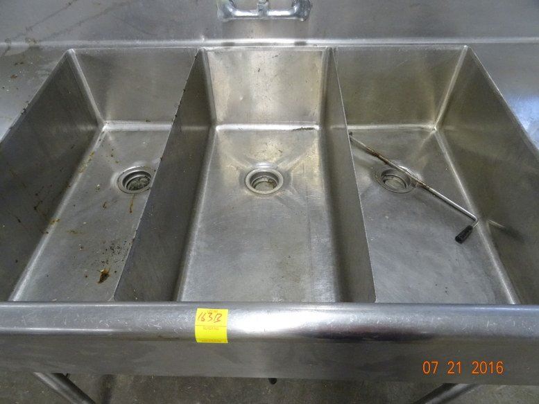 S/S 7' 3-Comp Sink w/Drain Levers - Leg Needs Repair