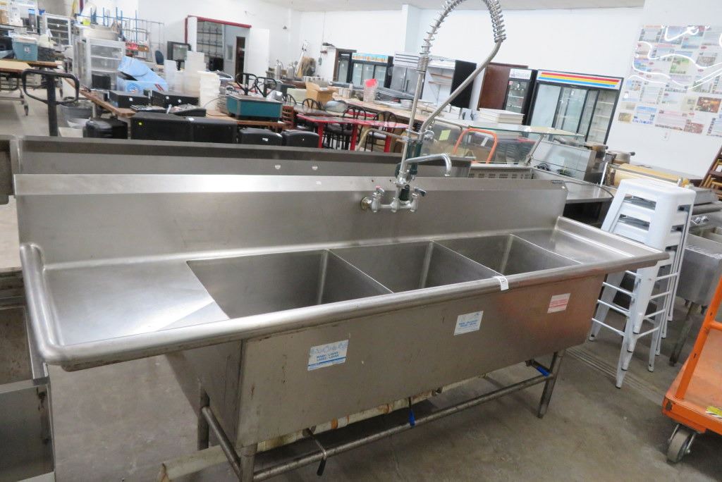 S/S 8' 3-Comp Sink w/Drainboard/Lever & Wand