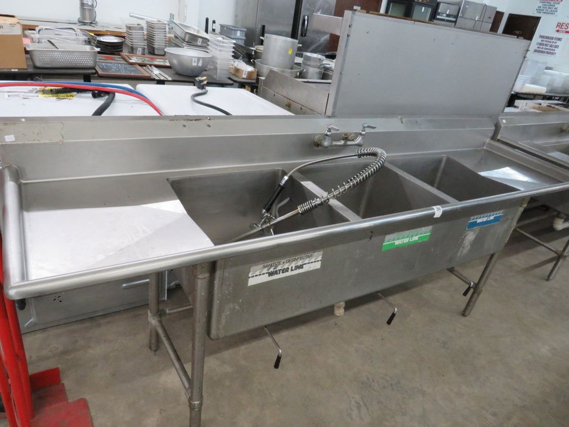 S/S 8' 3 Comp Sink w/Wand/Drainboards/Levels