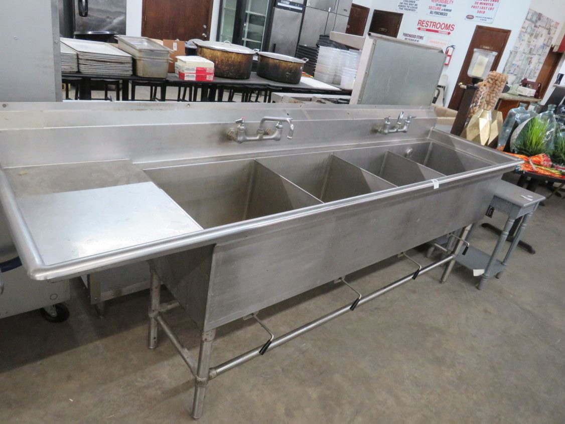 S/S 8' 4 Comp Sink w/Drainboard/Levels