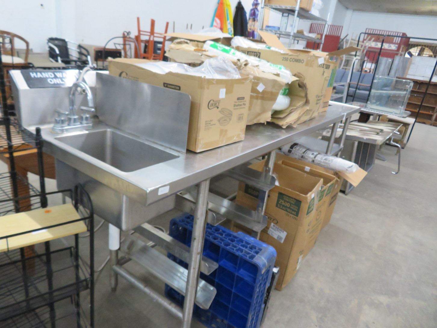 S/S 8' Work Table w/Hand Sinks, Tray/Roll In Storage and Undershelves