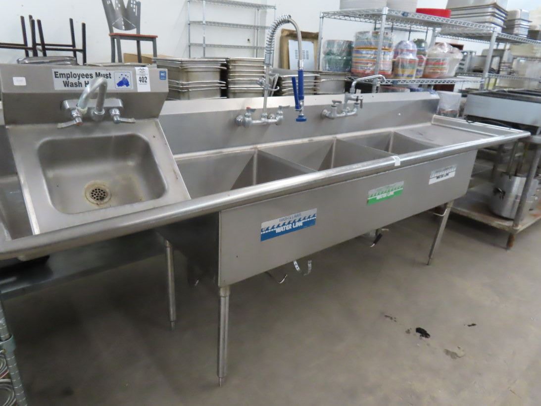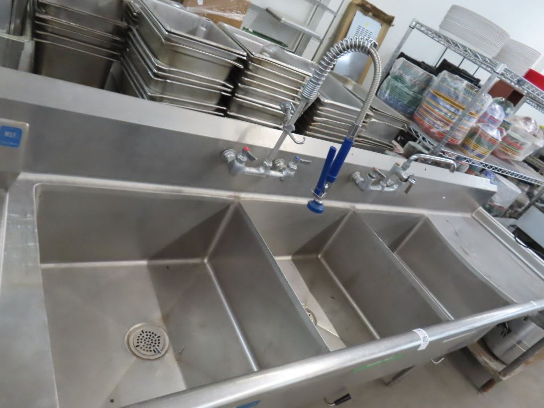 S/S 9' 3 Comp Pot Sink w/Lever Controls/Wand/Drainboards