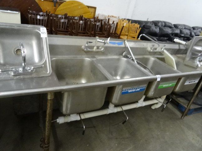 S/S 9' 3 Comp Sink w/Drainboards & Levers