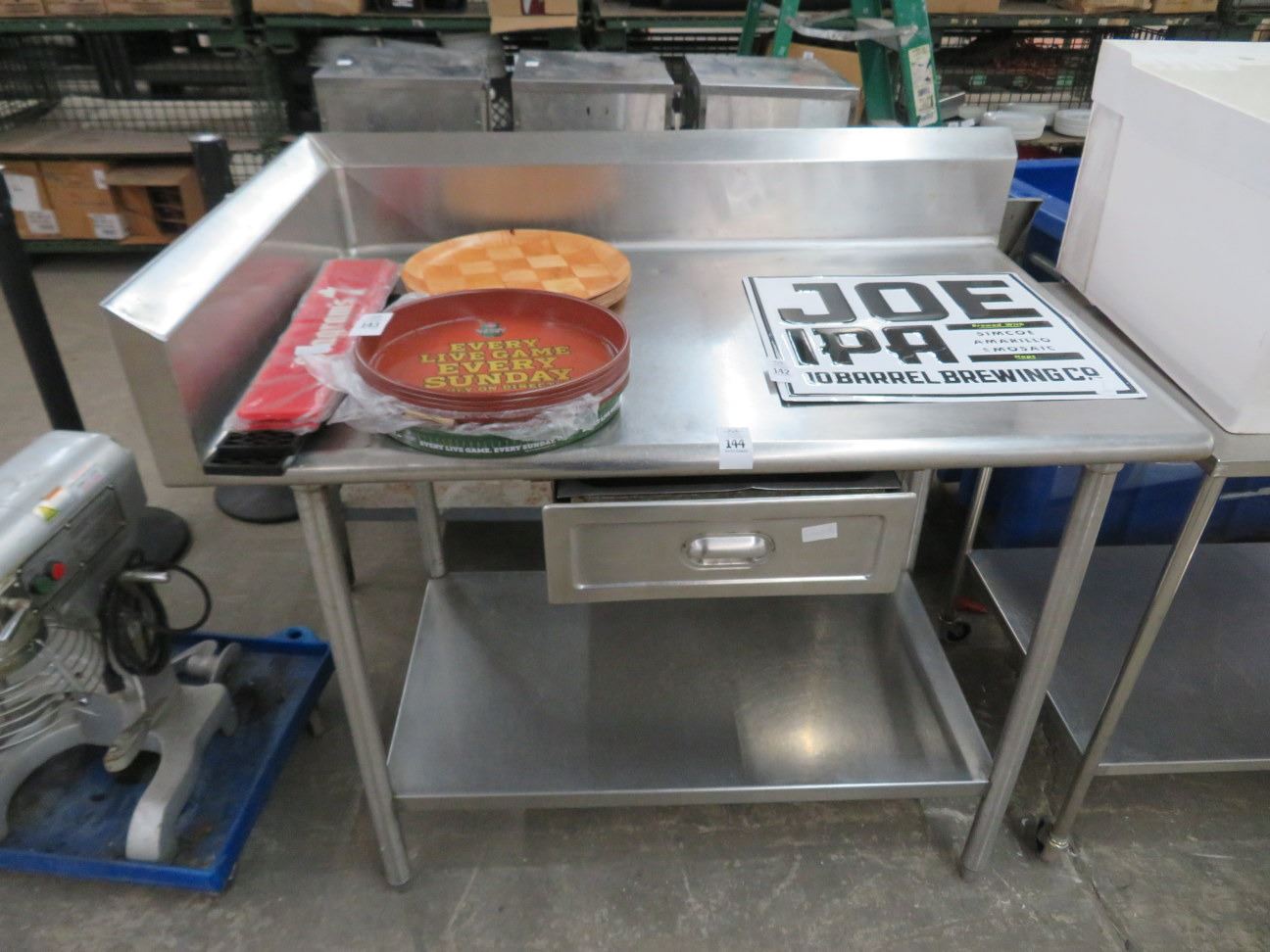 S/S Corner Table w/Backsplash, Drawer and Undershelf