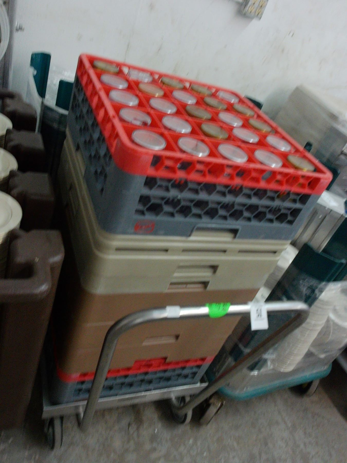 SS Dishwasher Tray Cart w/Dishes/Tumblers