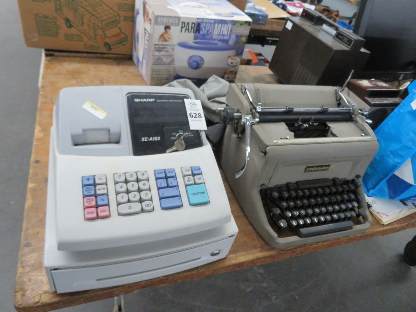 Sharp Electronic Cash Register & Underwood Vintage Typewriter