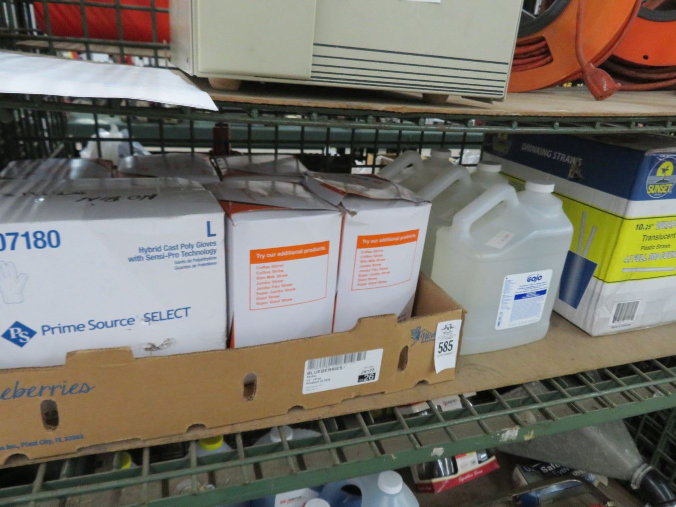 Shelf Lot Poly Gloves, Gojo Body Wash & Drinking Straws