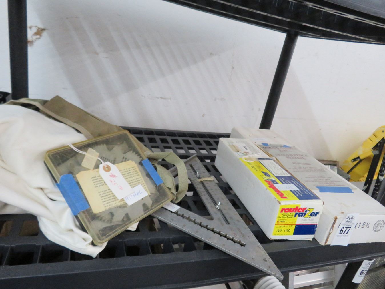Shelf Lot Saw Blades, Router Raizer, Spacer Fence Systems