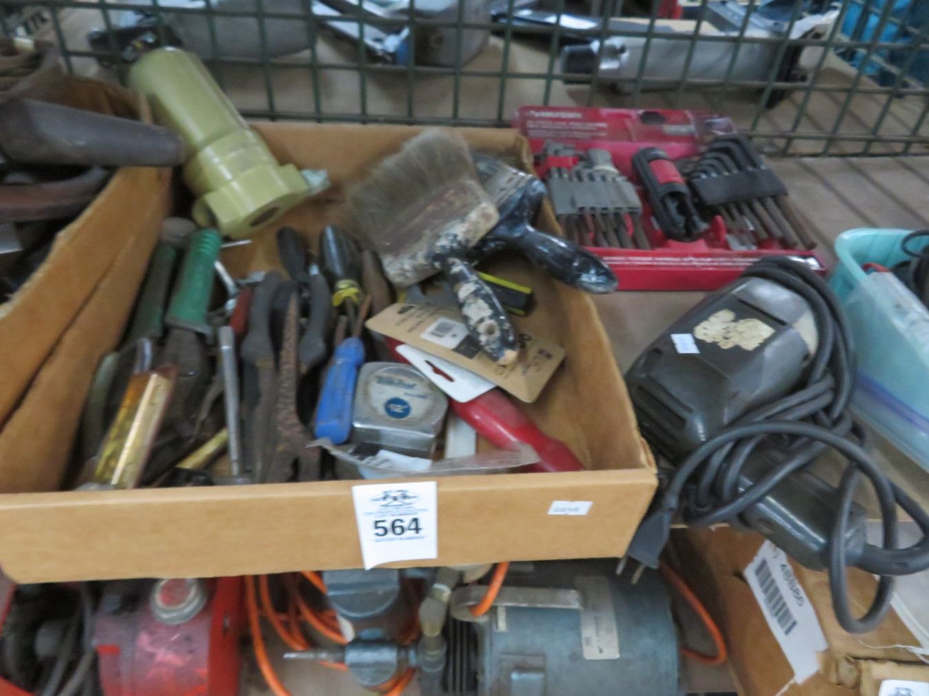 Shelf Lot of Asst. Tools, Husky Allen Key Set, Electric Power Drill