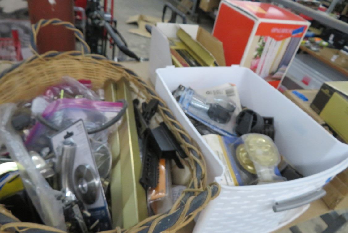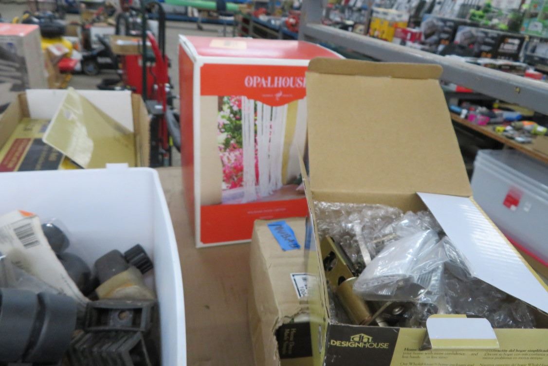 Shelf Lot of Lights, Locks, Casters & Curtain