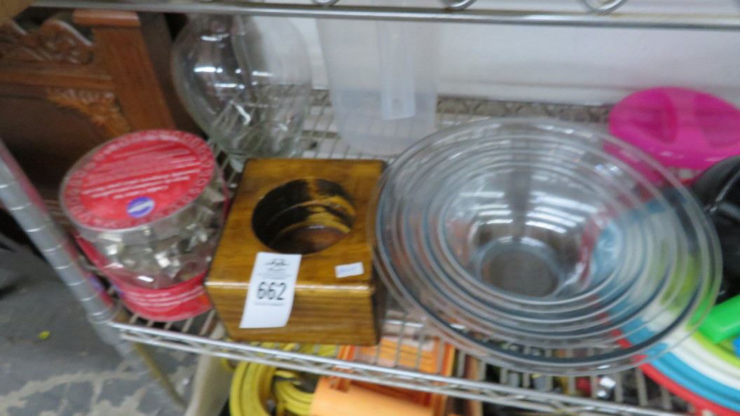 Shelf Lot of Nesting Bowl Set, Pyrex Lidded Dish & More
