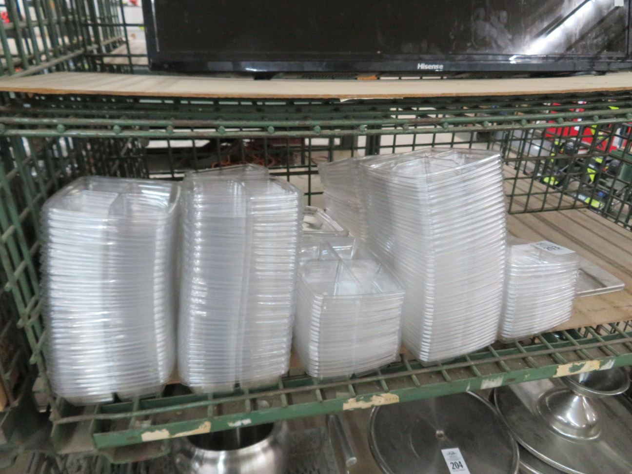 Shelf Lot of Plastic To-Go Boxes