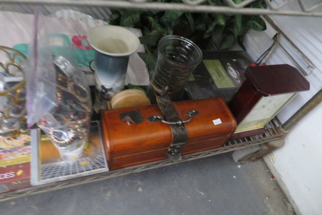 Shelf Lot of Wood Case, Clock, Platter, Puzzle