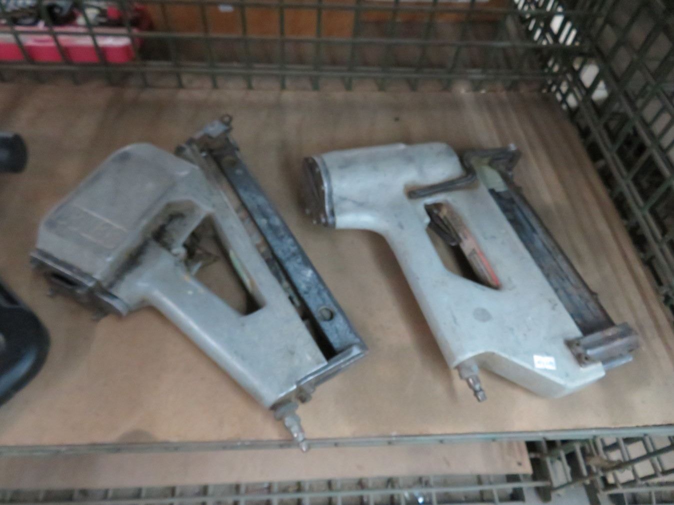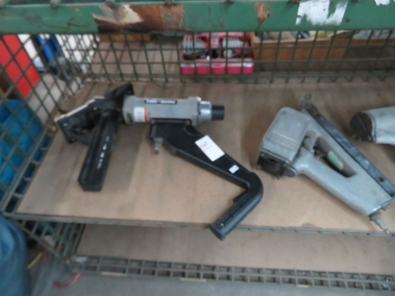 Shelf of Air Staple Guns (2), Porter Cable Air Cleat Nailer