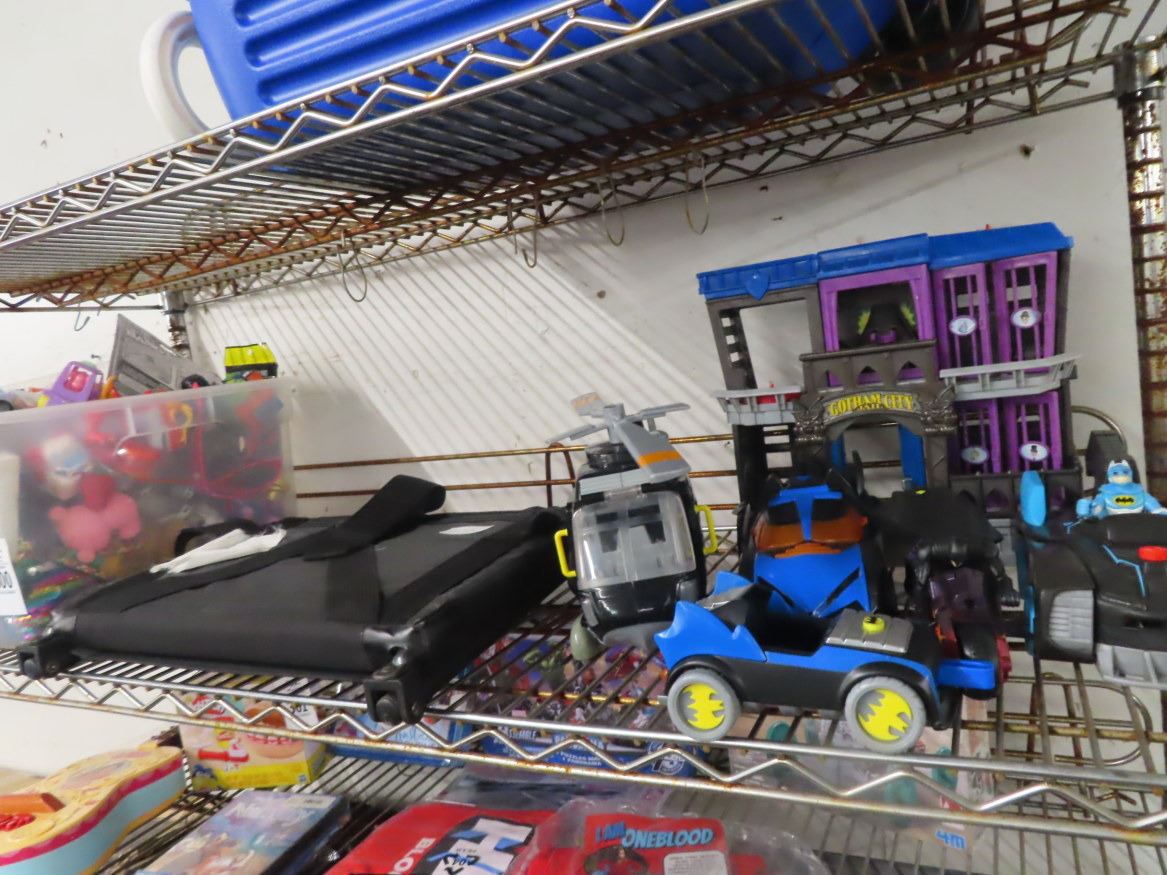 Shelf of Batman Toys and Transporter