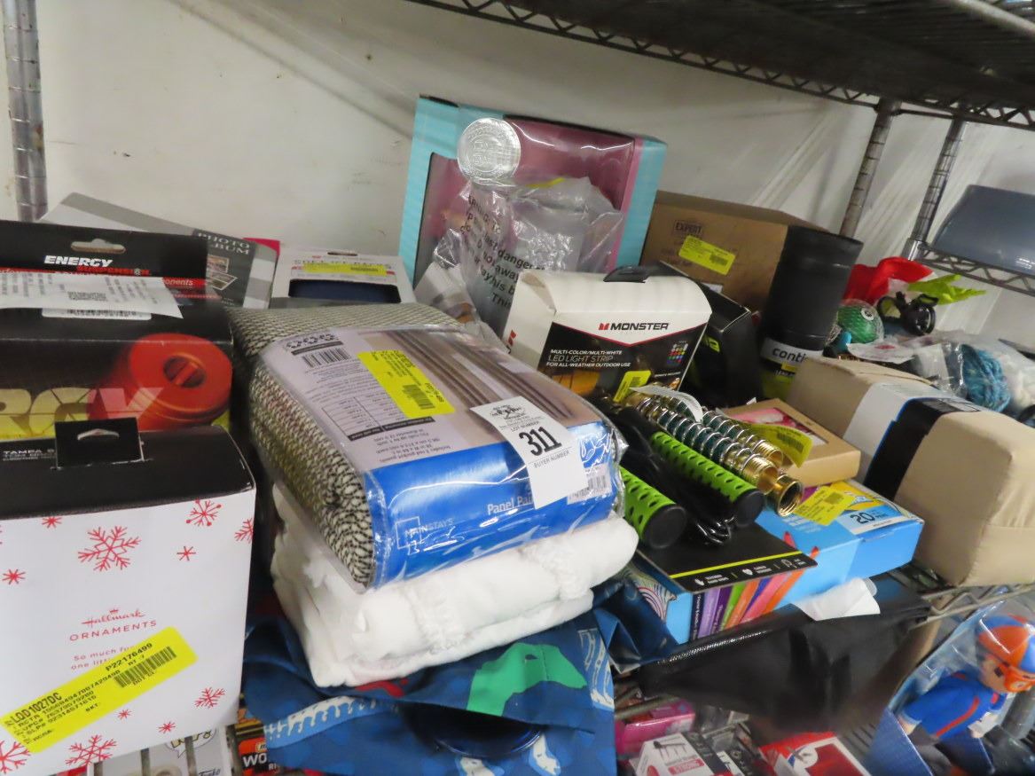 Shelf of Photo Albums, Curtains, Toys and Asst. Items