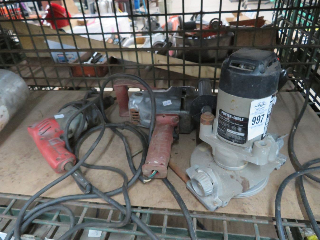 Shelf of Porter Cable Router, Drills, Tank and Filter