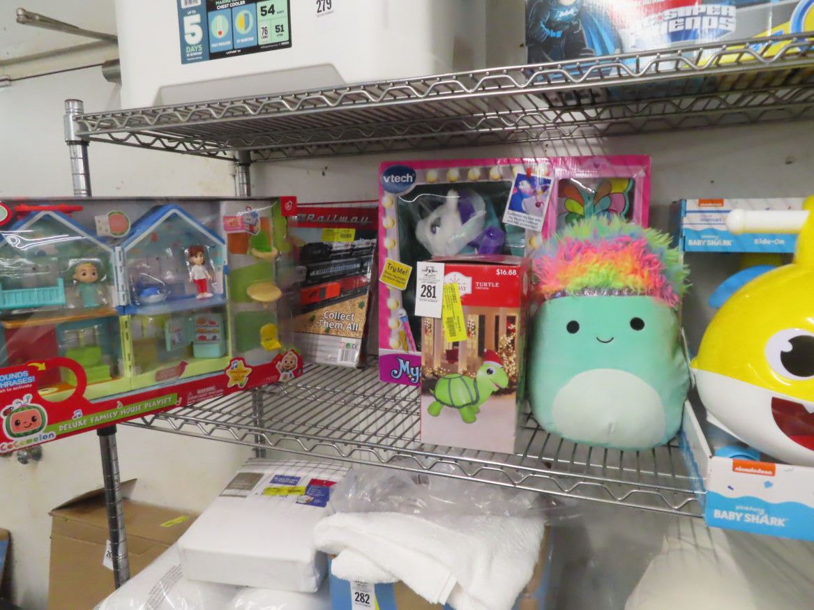 Shelf of Railway Trains, Baby Shark Ride On, Squish Doo And More