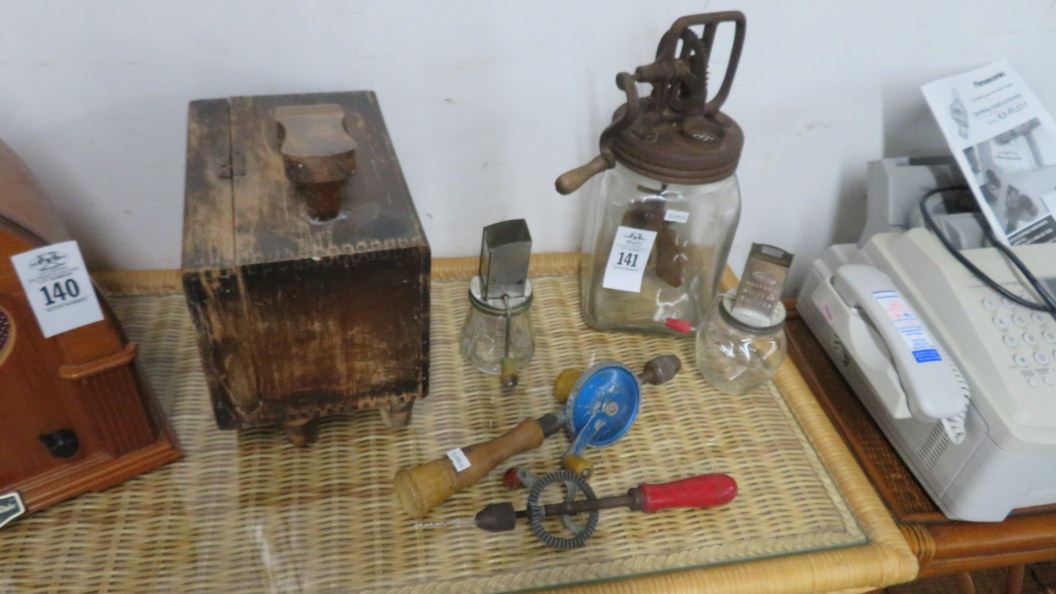 Shoe Shine Box, Vintage Mixer & Hand Drills
