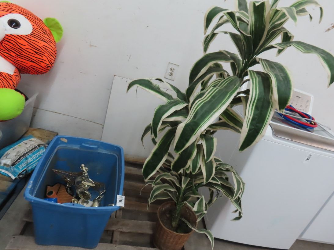 Silk Potted Tree, Tub w/Trophies and Home Goods