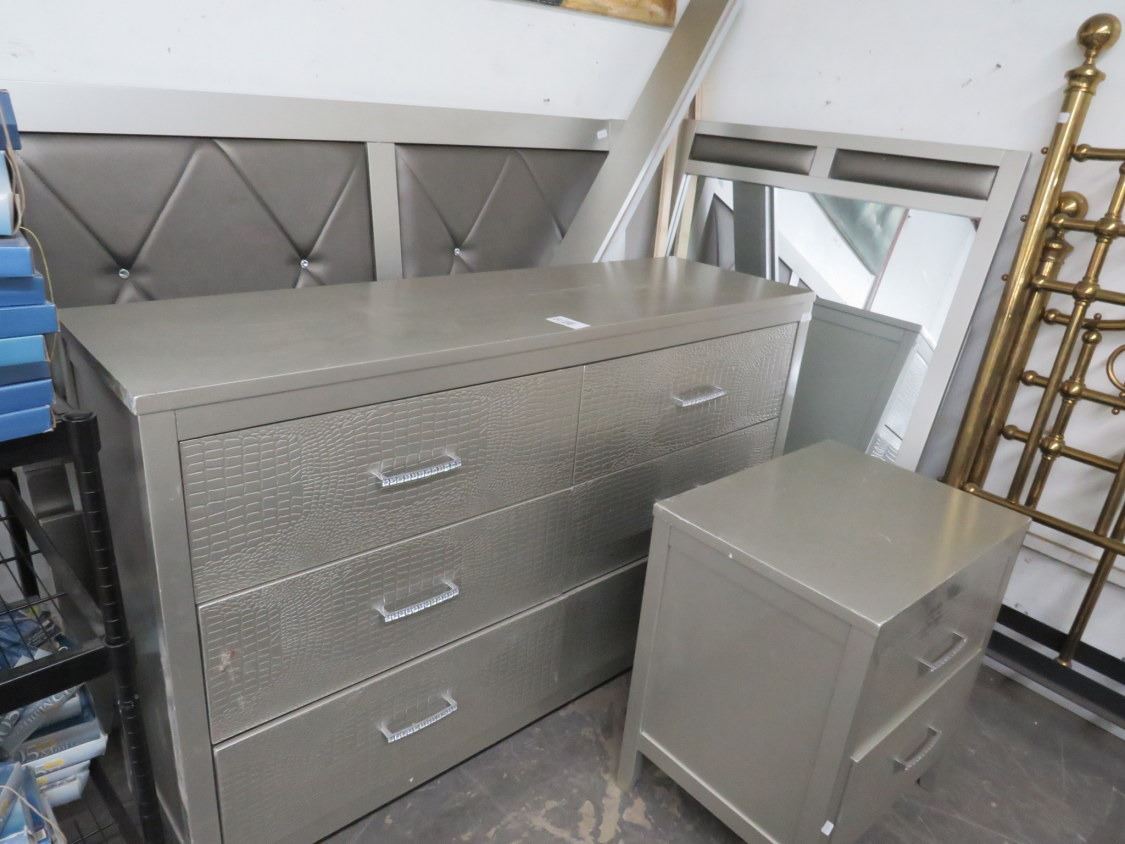 Silver Contemporary Dresser/Mirror/Queen Bed