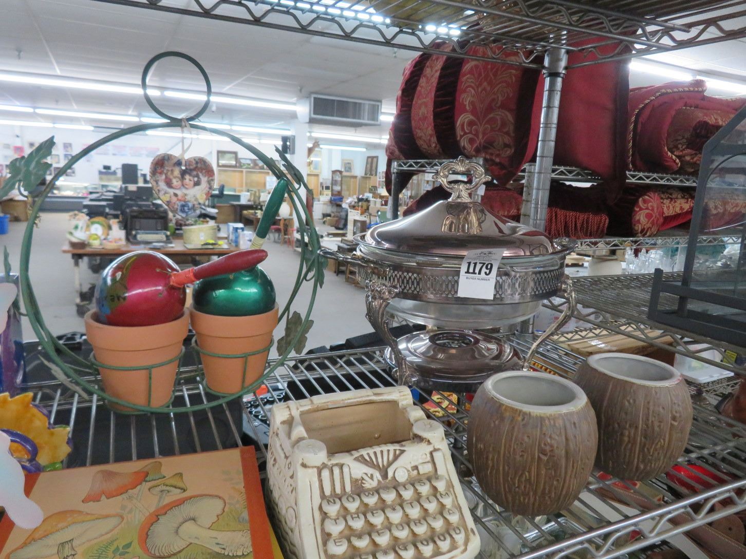 Silverplate Chafing Dish, Coconut Cups, Shakers, Asst. Décor