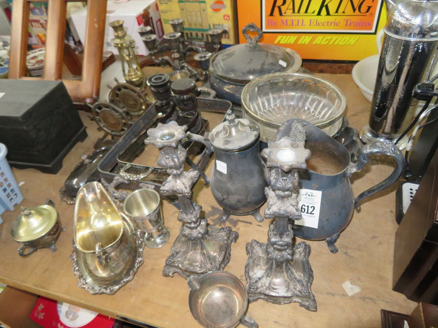 Silverplate Pitchers, Bowls, Dining Items, Candlesticks, Bookends