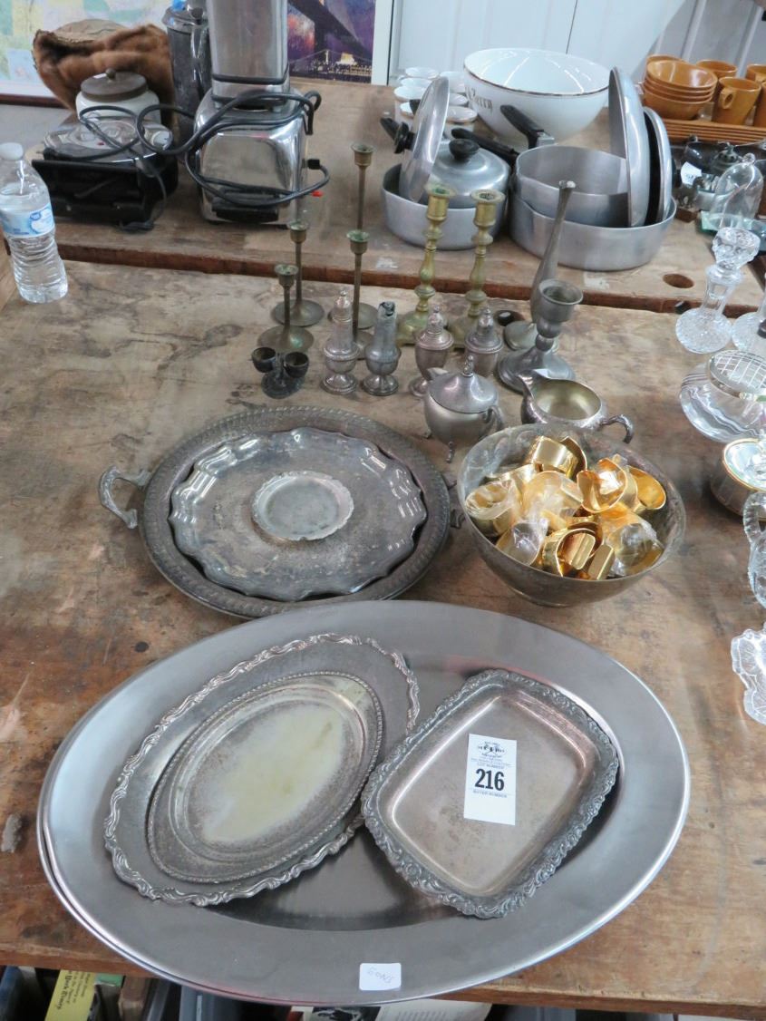 Silverplate Platters, Candlesticks, Other Items, Goldplate Napkin Rings