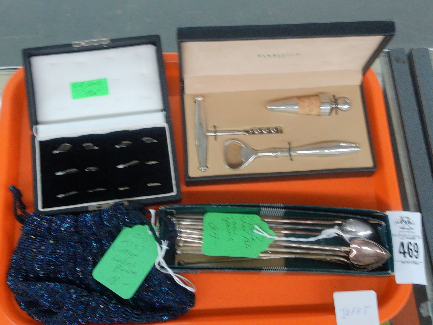 Silverplate Spoons, Wine Bottle Set, Lens, Vintage Ladie's Purse