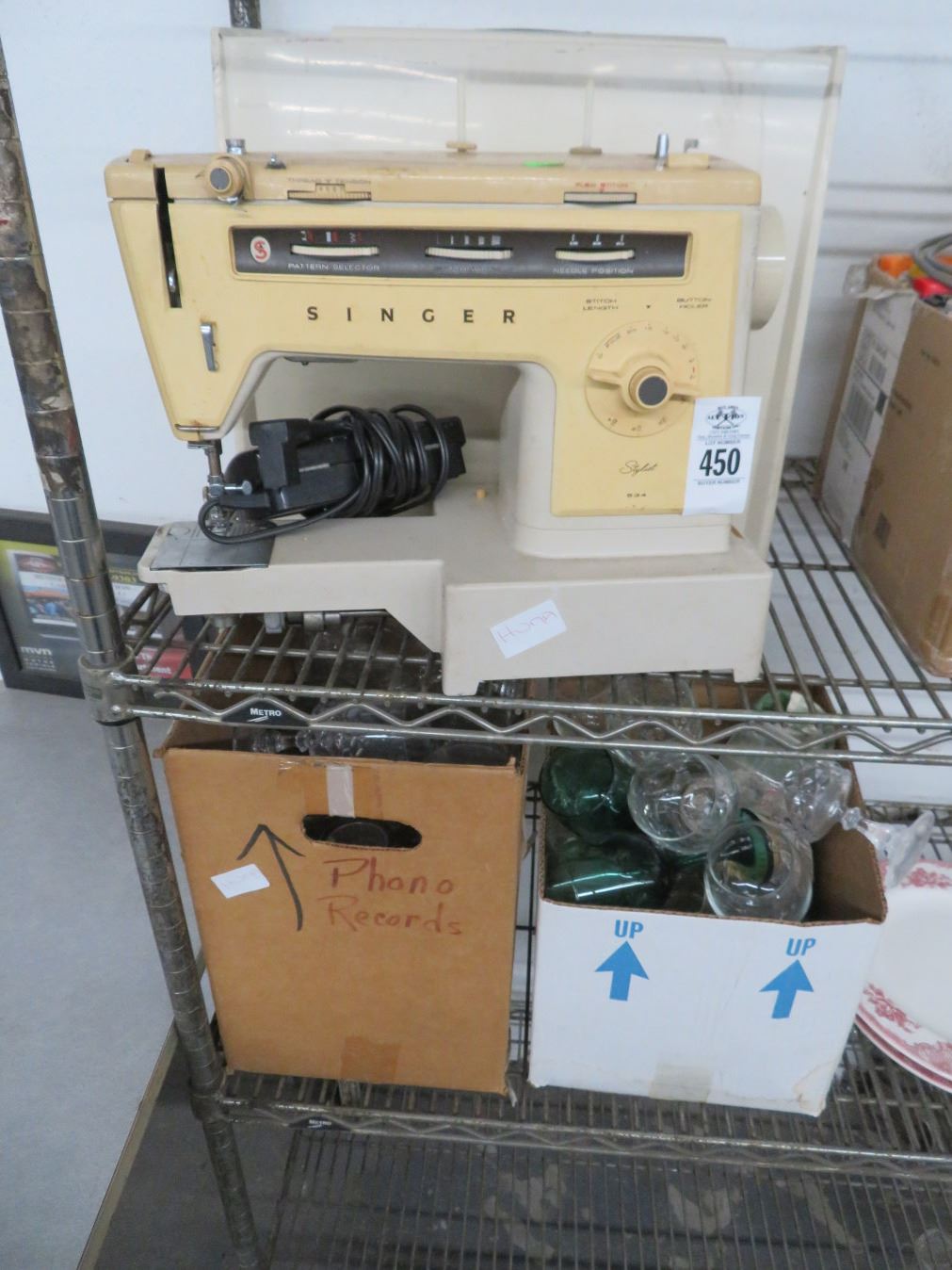 Singer Sewing Machine and Glassware