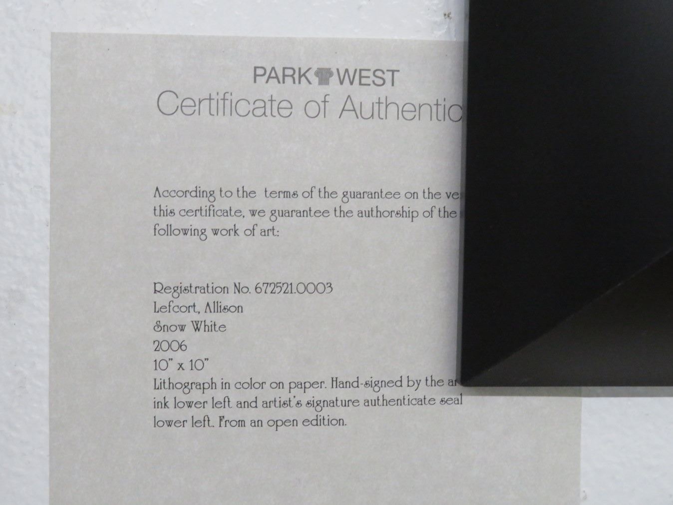 Snow White Lithograph Signed Allison Lefcort - 10 x 10