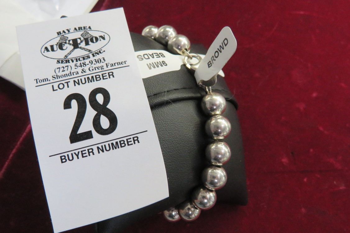 Sterling Silver Bracelet w/9mm Beads - 7 1/2" Long 21g