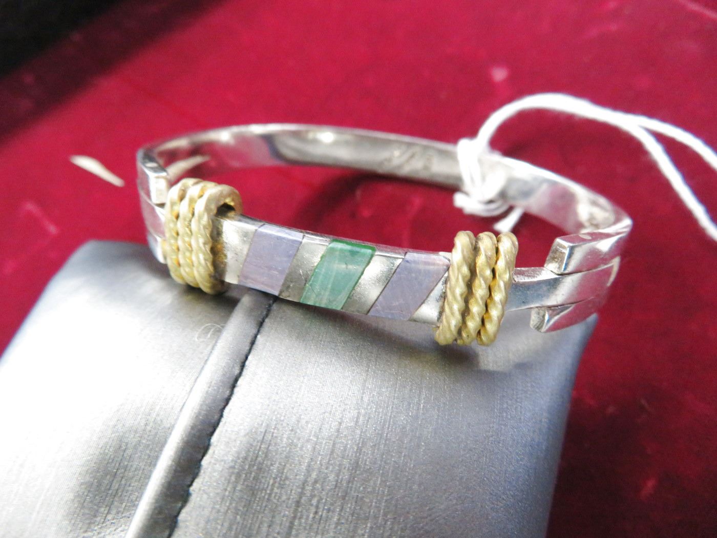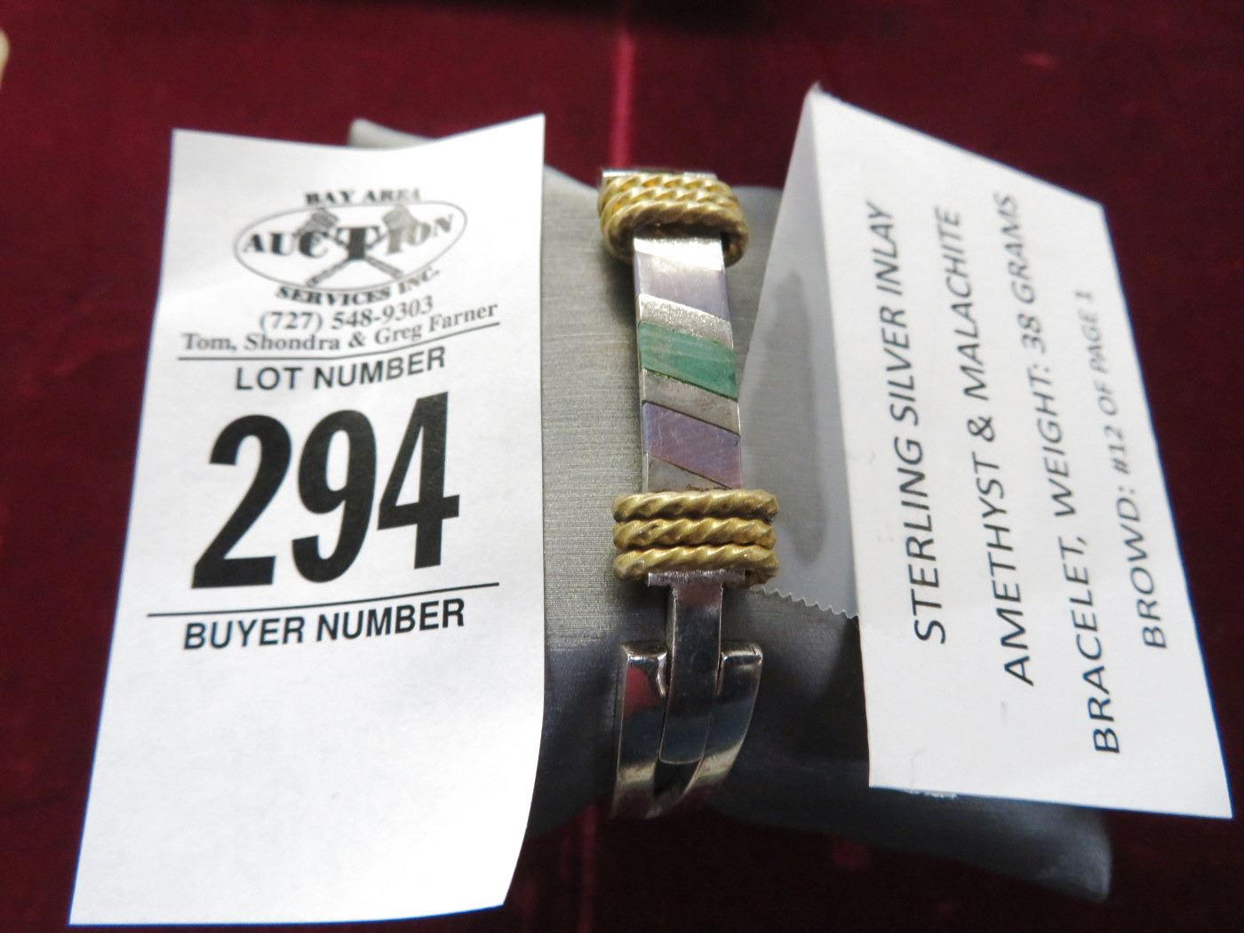 Sterling Silver Inlay Amethyst Bracelet 3.8g