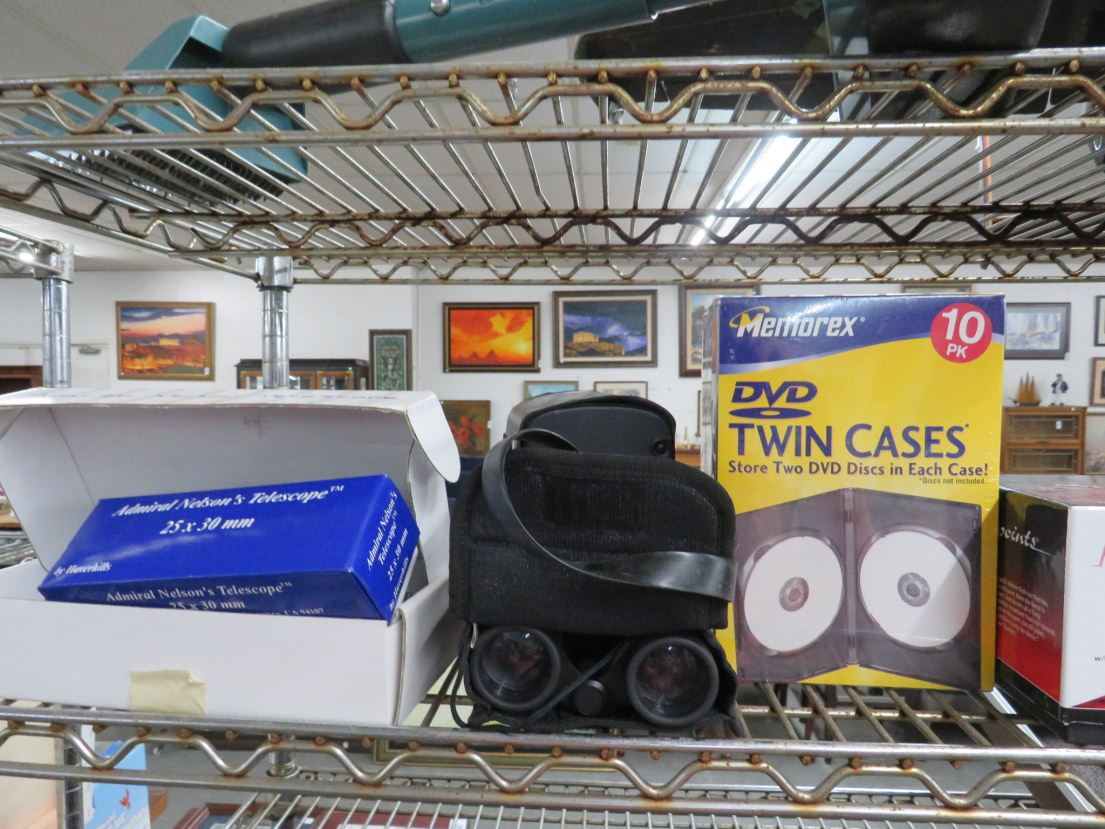 Surge Protector, Admiral Telescope, DVD Discs, Binoculars