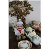 Table Lot of Christmas Dishes, Figurines,Décor, Musical Wall Art