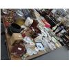Table Lot w/Dishes, Press, Teapot, Lamps, Music Book