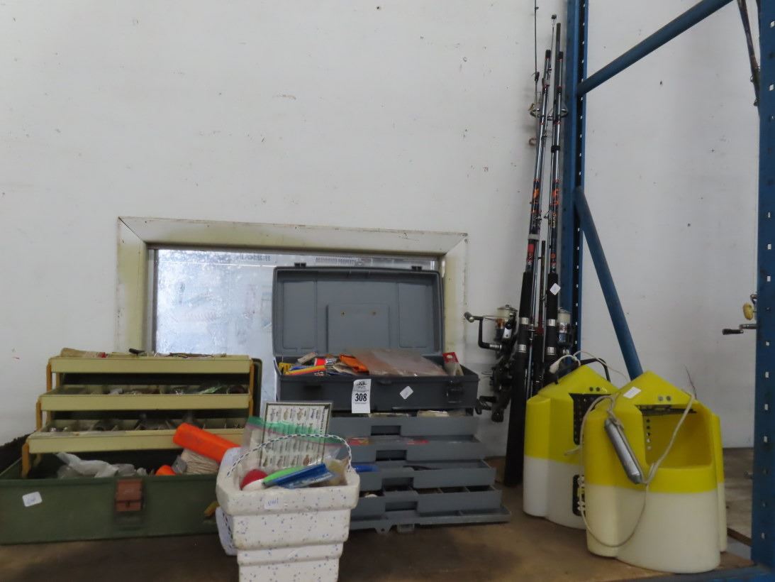 Tackle Boxes w/Tackle, Bait Bucket and Fishing Poles