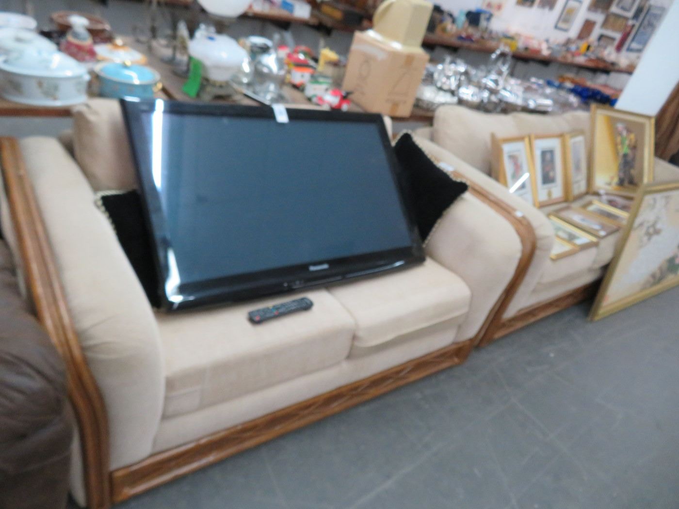 Tan Cloth Rattan Trim Sofa/Loveseat Set