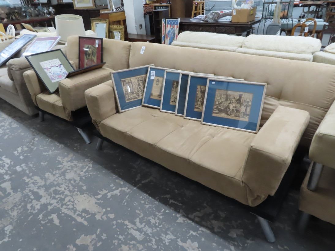 Tan Sofa/Easy Chair Fold to Futon Set w/2 Ottomans